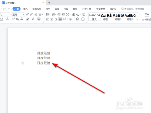 在WPS文档界面输入几个待设置的文字题目。