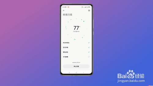 切换到平安界面之后,下滑选择病毒扫描跳转到新界面。