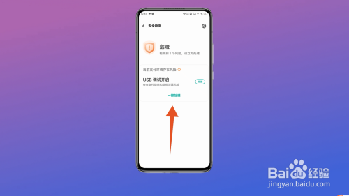 打开平安检测界面后进行手机扫描,发现病毒后选择处置即可清理病毒。