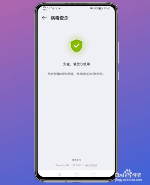 切换页面之后,显示系统会主动杀毒,若是显示平安则没有发现病毒。
