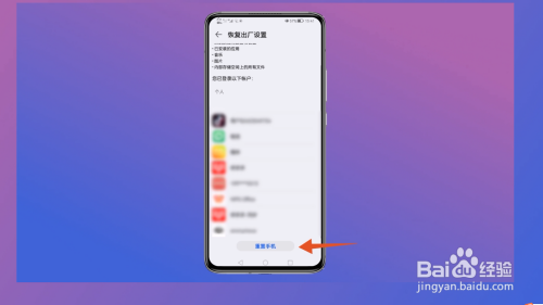 打开重置页面后,选择恢复出厂设置,切换界面后点击重置手机即可彻底清理病毒。