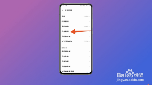 打开平安与隐私界面之后,选择平安检测跳转到新的页面。