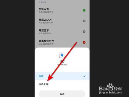 在应用权限中找到【显示悬浮窗】,设置为【始终许可】。