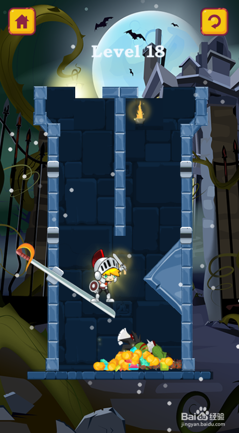 第十八关是获取右侧上端的宝藏,里面有五个拉针,环境如图。