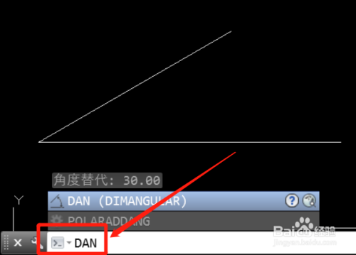 在cad号令行中,输入角度测量指令“DAN”,按下空格键。