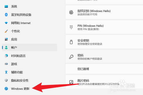 点击设置界面的Windows更新选项。