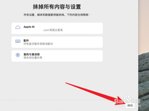 点击选择界面的继续按钮完当作抹除。