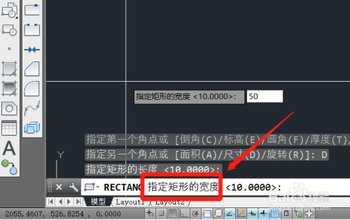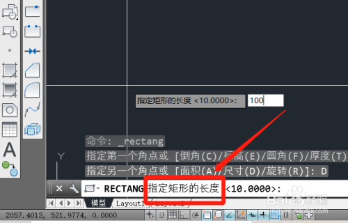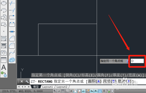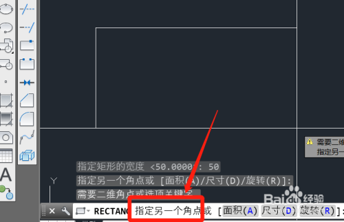 再指定另一个角点的位置,完当作指定长宽尺寸的矩形绘制。