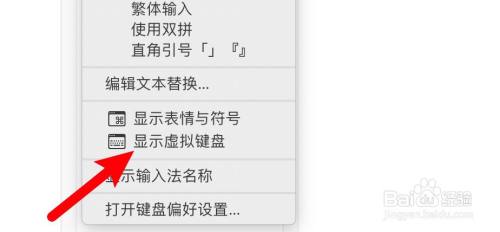 打开下拉菜单,点击显示虚拟键盘。