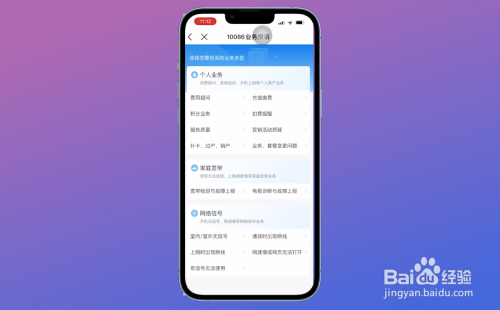 进入10086营业投诉后,选摘要投诉的营业类型,点击进入。