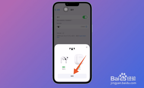 按照提醒一向按住充电盒背后的按钮并期待手机进行毗连,毗连当作功今后点击手机弹窗中的【继续】即可完当作毗连。
