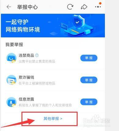 在“举报中间”界面中,在“我要举报”项下,选择“其他举报”进入,如图所示。