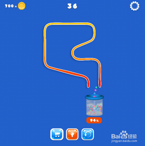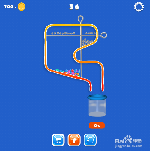 彩色小球100%进入瓶子,弹出通关画面,如图,这样就过关了。