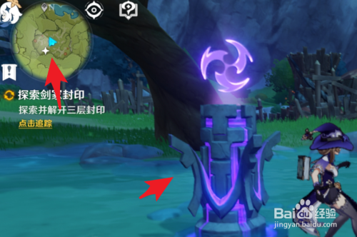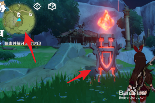 达到第二处,打败怪物,经由过程安柏点亮第二处的神柱。
