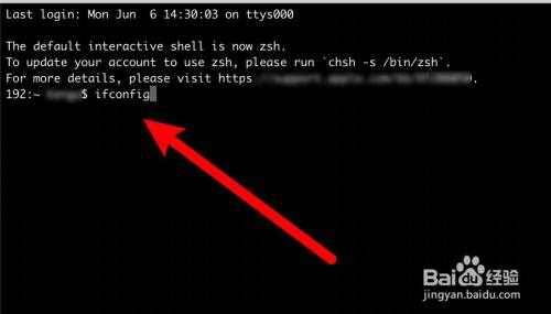 在打开的终端输入ifconfig号令,按回车执行。