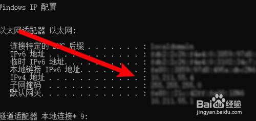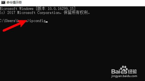 输入ipconfig号令,按下回车执行。