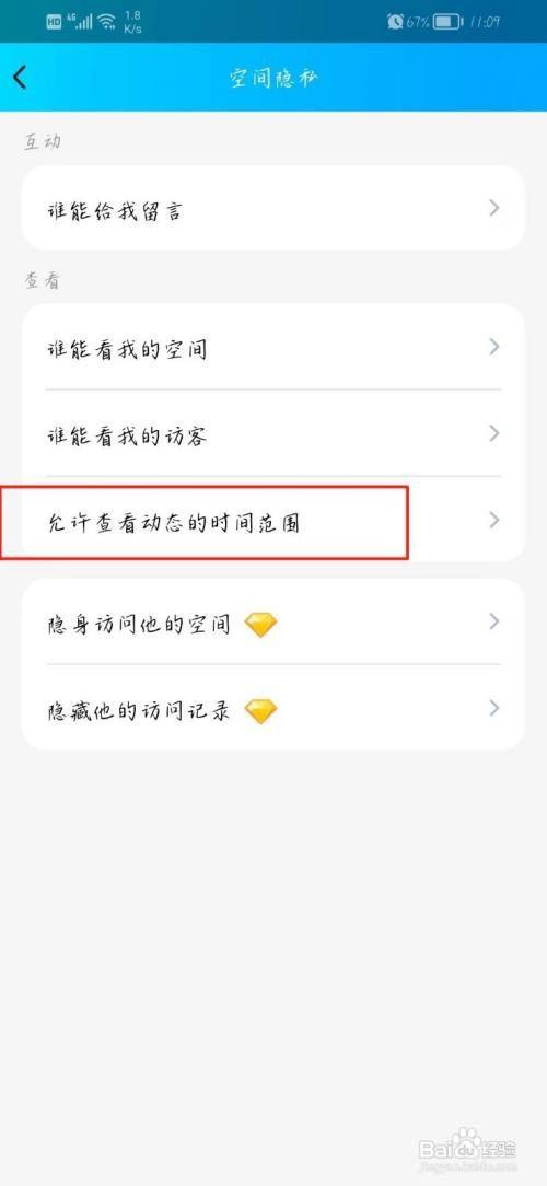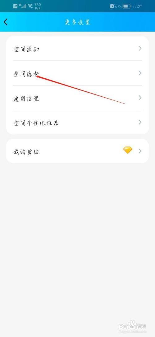 第六步、在界面中,即可找到空间隐私并点击。