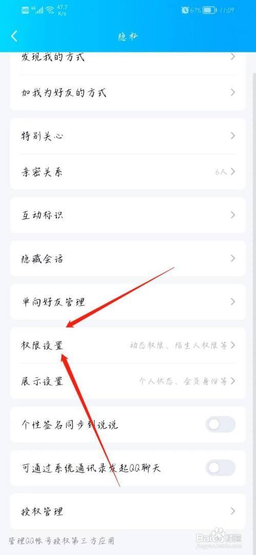 第二步、往下拉即可找到权限设置。