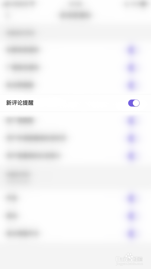 “新评论提醒”后面的圆点变为紫色即暗示开启非旅新评论提醒当作功