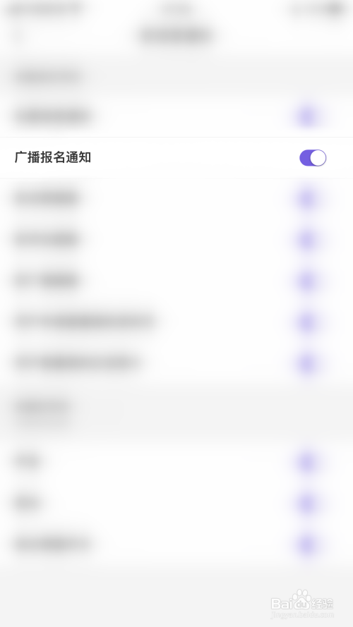 “广播报名通知”后面的圆点变为紫色即暗示开启非旅广播报名通知当作功