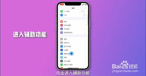 进入辅助功能,点击触控,开启辅助触控,点击呈现的小圆点。