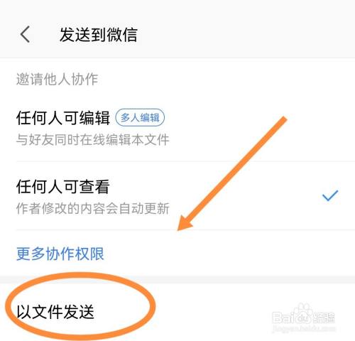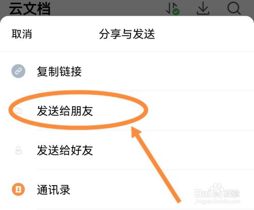 点击以文件发送,在弹出菜单中选择微信跳转到微信页面选择老友点击分享。