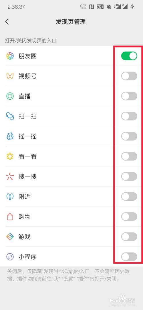 - 将不需要的功能封闭后,可以大大晋升微信利用体验。