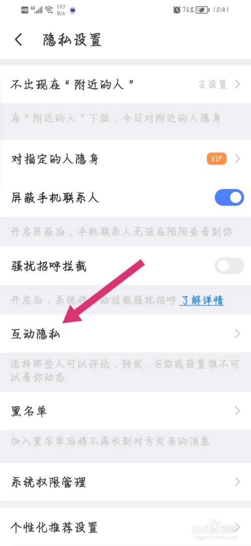 进入界面后,点击互动隐私。