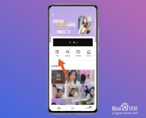 在醒图的界面中,经由过程点击拼图的按钮,进入新界面。