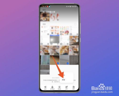 在手机相册的界面中,长按一张图片,呈现东西栏后,再选择一张图片。