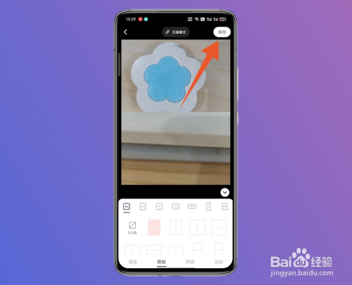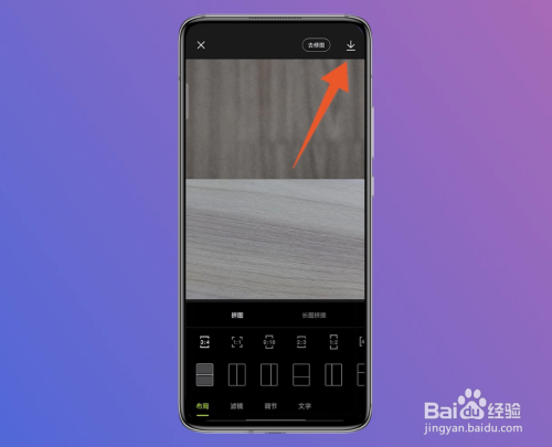 在新界面中,点击右上方的箭头图标,就可以将拼图保留到手机相册了。