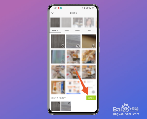 在新界面中,点击想要拼图的图片,接着点击完当作的按钮,进入到新界面。