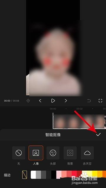 打开智能抠像后,选择抠图的部门,点击对勾,抠像完当作,选择下一步,点击直接导出即可。