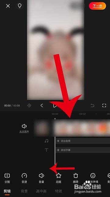 进入剪辑界面点击抠图素材选中,标的目的左滑动东西栏。