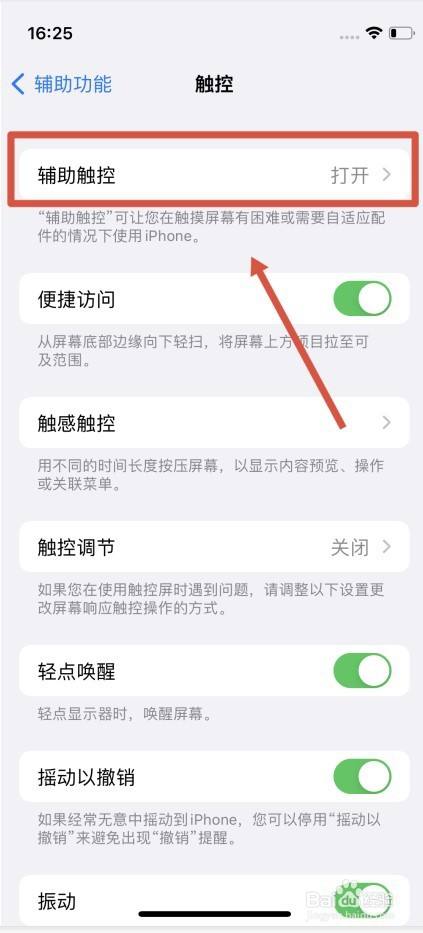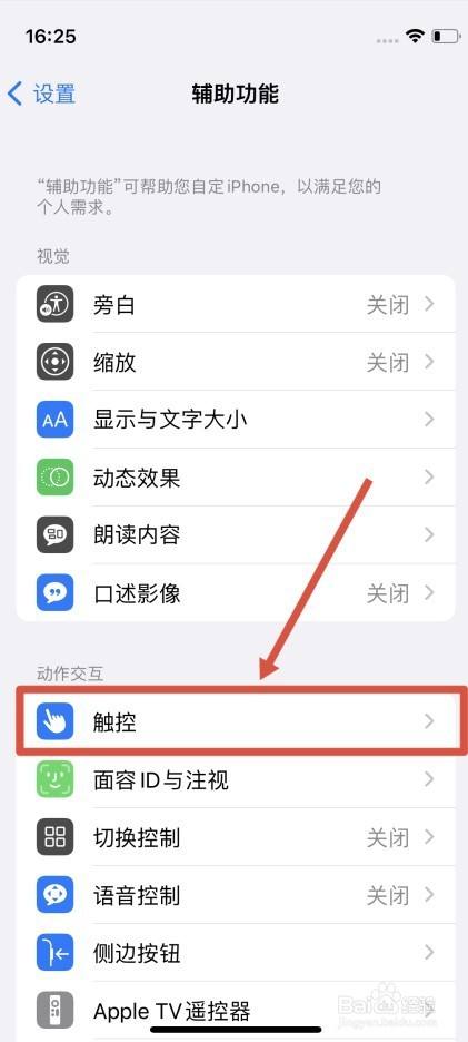 在辅助功能页面中,点击进入下方的“触控”选项。