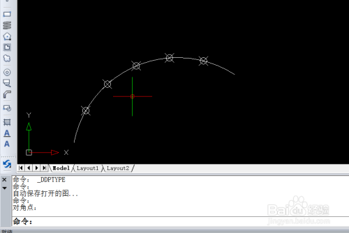 首先,我们在CAD界面中,操纵如图所示的”圆弧东西“绘制一段圆弧。