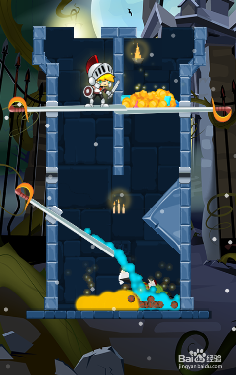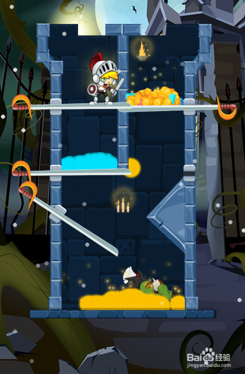 这一关是获取拉针上面的宝藏,共有五个拉针,环境如图。