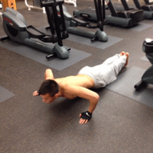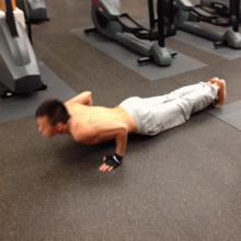 这种俯卧撑是要求在做”一般俯卧撑“的基础上,使用手臂肌肉、胸部肌肉、腰腹部肌肉等的气力,同时发力让身体刹时腾空,然后再回到肇始位置。这种俯卧撑本家儿要熬炼胸肌、腹肌、手臂等的发作力,对操练者的要求比力高。