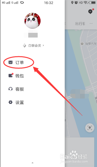 左侧弹出小我私家信息页面,点击此中的订单选项。