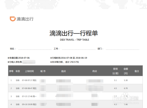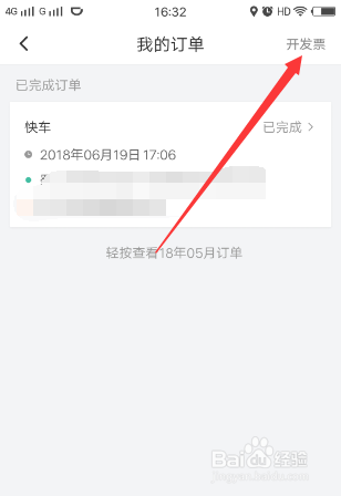 在订单页面可以看到近期小我私家的滴滴行程环境,这里选择点击右上角的【开发票】按钮。