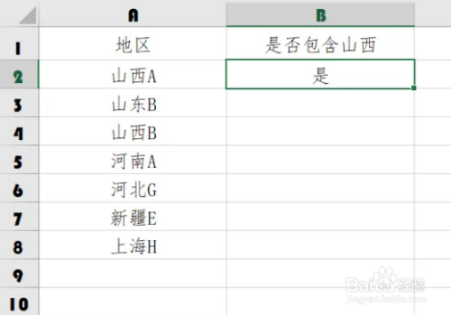 返回到事情表中,A2单位格是否包罗[山西]字样,就判断了出来。