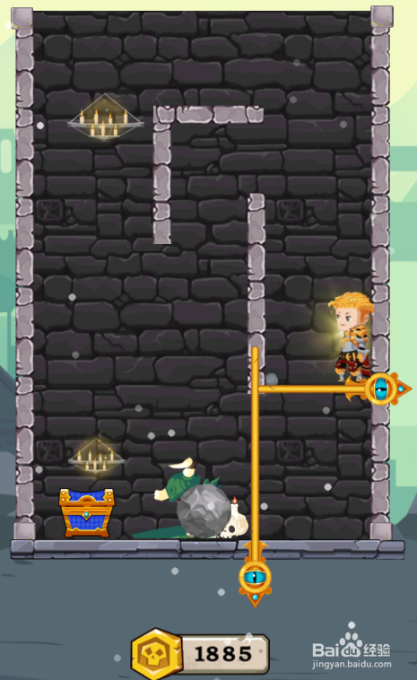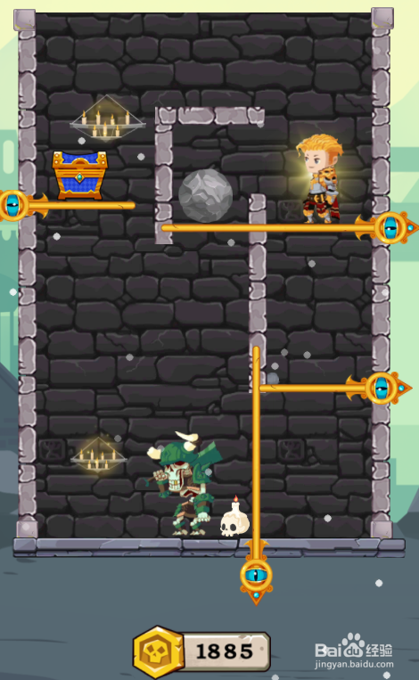 这一关是得到宝箱,共有五个拉针,需要覆灭失底部的仇敌,环境如图。