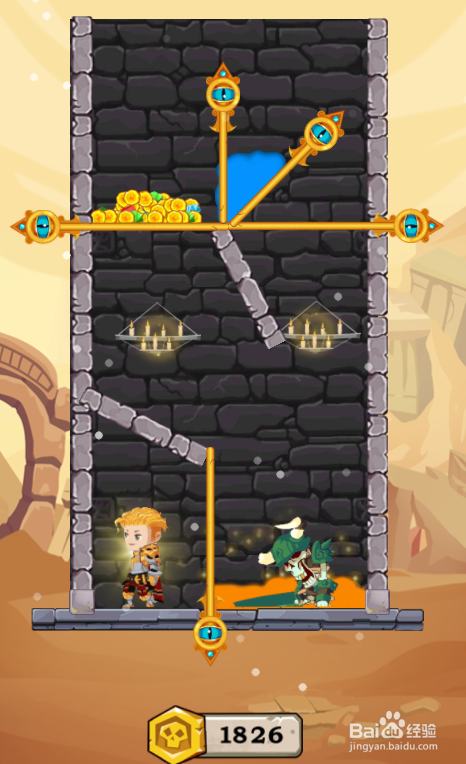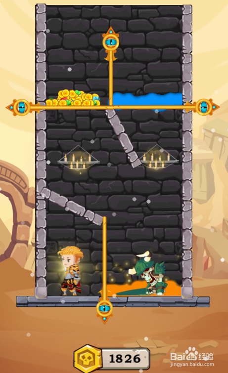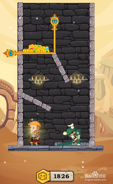 这一关是得到宝藏,共有六个拉针,仇敌站在少年的右侧,环境如图。
