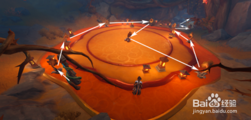一直往里走,走到一个平台。根据图中挨次转变乐律花岌岌可危标的目的再吹奏。要是被树干盖住,请切换岛屿形态再来。