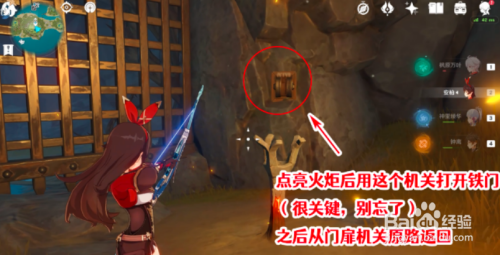 在进入到门后边,我们在电亮火把的同时不要健忘将构造打开。必然要打开,否则后面没法拿到贵重宝箱。