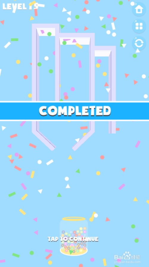 彩色球全数进入罐子,弹出COMPLETED的通关画面,如图,这样就过关了。