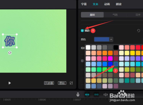 随后,点击文字菜单,选择默认文本,将其添加到文字轨道上