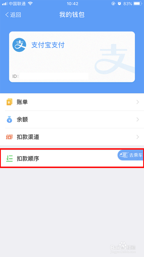 在【我的钱包】界面,点击【扣条目挨次】。