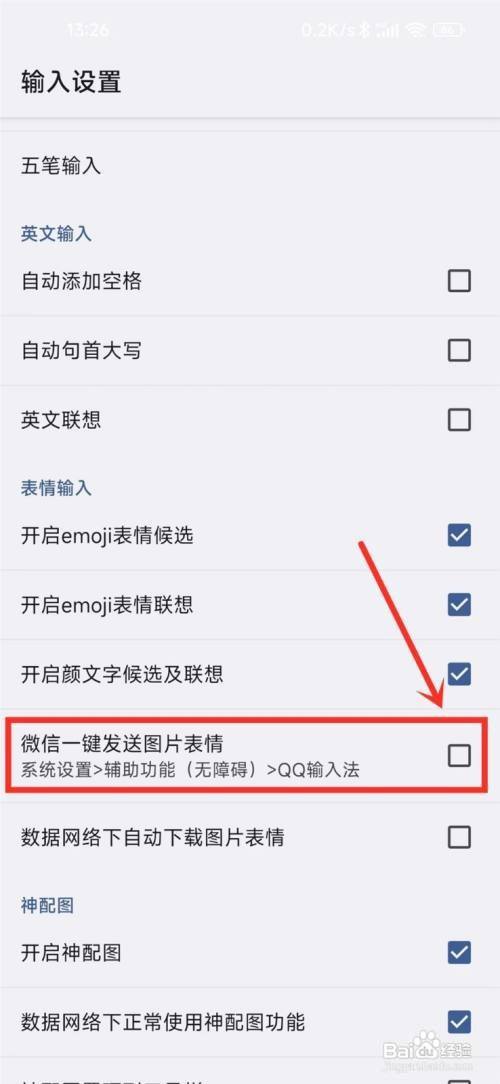 第三步、进入输入设置页面,勾选“微信一键发送图片心情”。