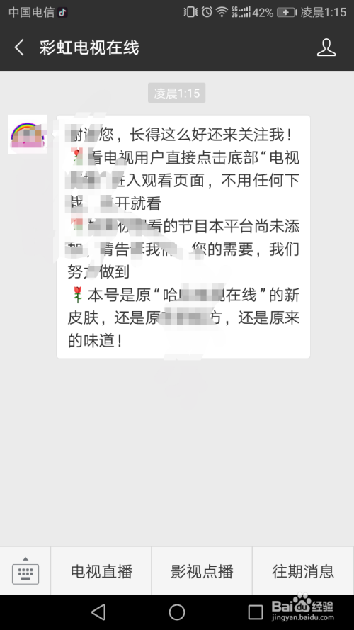 在顶部搜刮栏输入公家平台微旌旗灯号或公家号名称彩虹电视在线,点击搜刮标记后下方显示出方针公家号,点击它